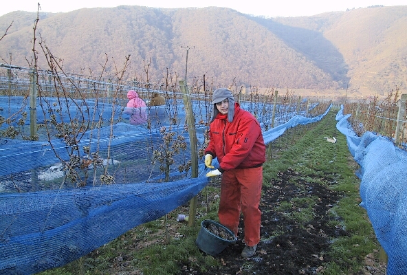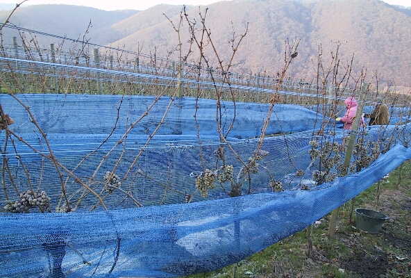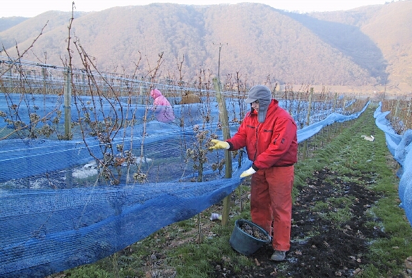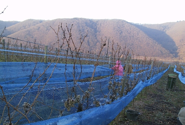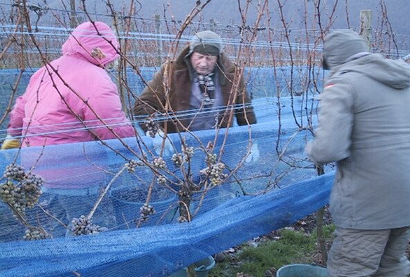 Hier sehen Sie uns bei der Eisweinernte am 14.12.2001 bei 9 Grad Minus.